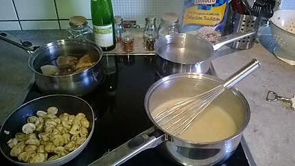 Préparer votre béchamel avec le bouillon, et le vin blanc (on peut le remplacer sans problème avec du jus de citron).