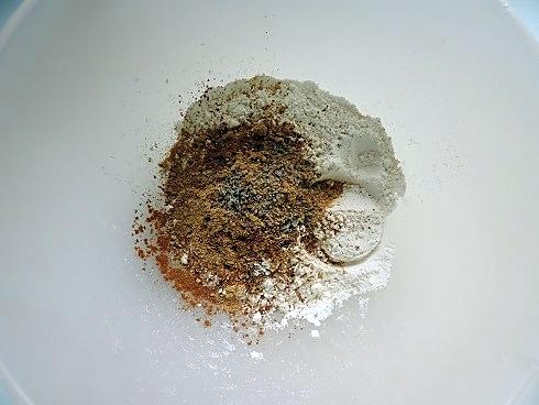 Dans un saladier, mélanger la farine avec la cannelle, le gingembre, la noix de muscade et la coriandre. Réserver.