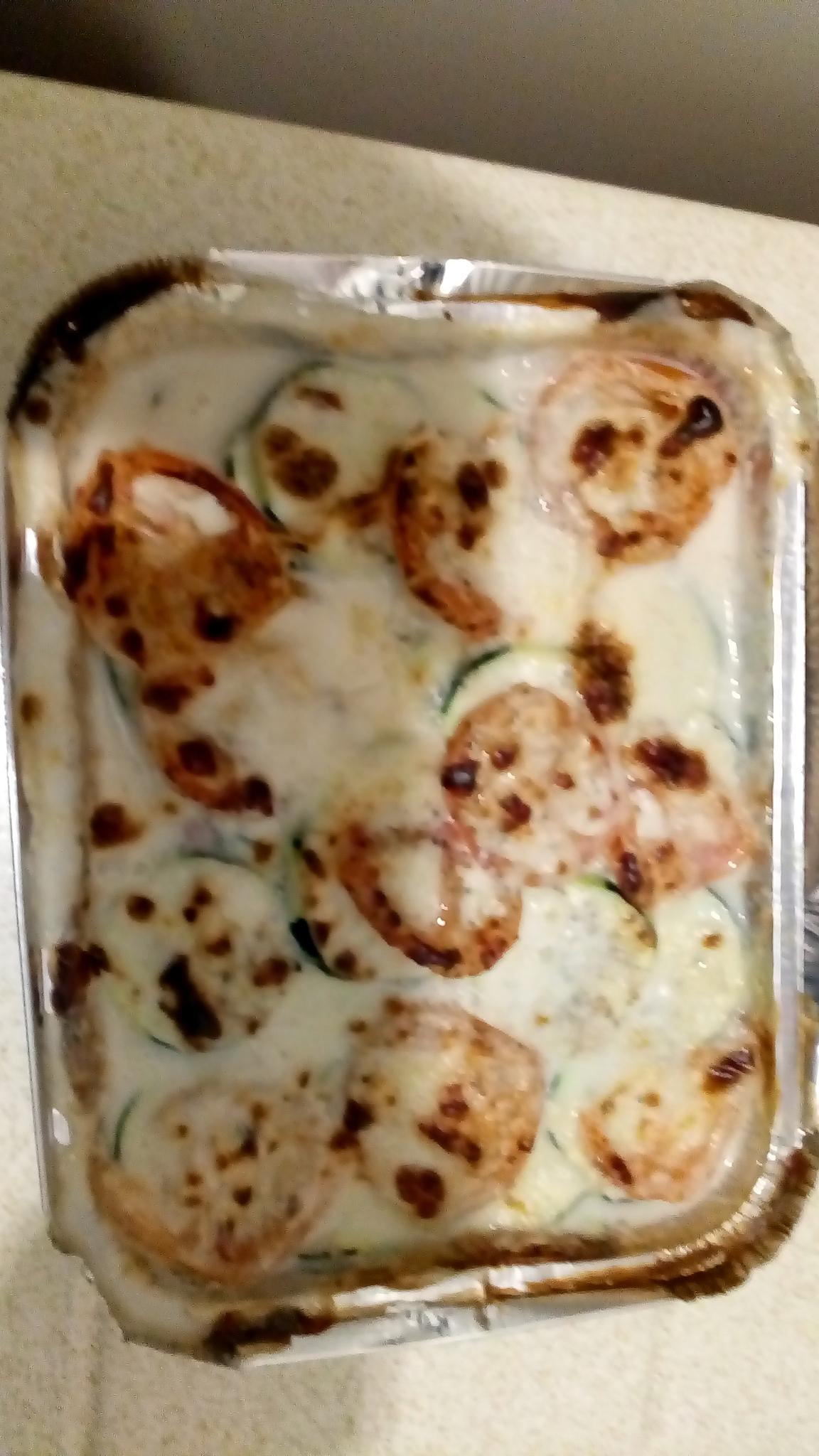 3 Courgettes ,4 tomates200 Gr de dés de jambon150 Gr gruyére rapéSauce béchamelSel poivre