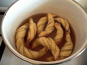 - à la sortie du four, mettre vos tchareks dans du miel avec quelques d'eau de fleur d'oranger. Et décorer avec les amandes ou autres.