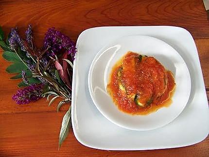 Tapissez en le fond de lamelles de courgettes si elles sont plus grandes que les miennes, ne pas les couper vous rabattrez les bords,