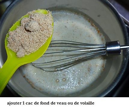 20 Cl de crème liquide20-30 G de cèpes séchés 1 Cac de fond de veau (porc, bœuf, gibier, veau ) ou de volaille ( poulet, dinde, canard )Sel, poivre