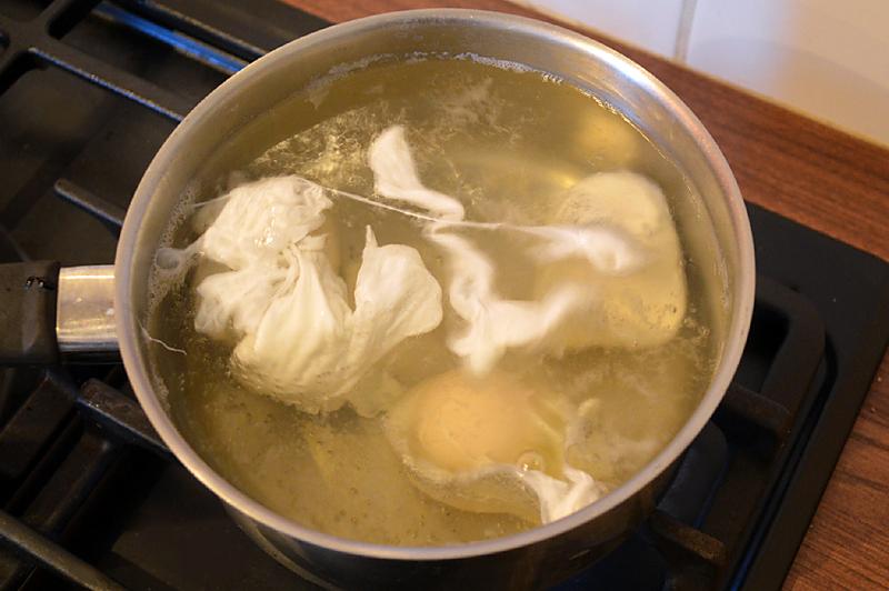* Dès que l’eau boue, versez délicatement l’œuf se trouvant dans le ramequin dans la casserole.