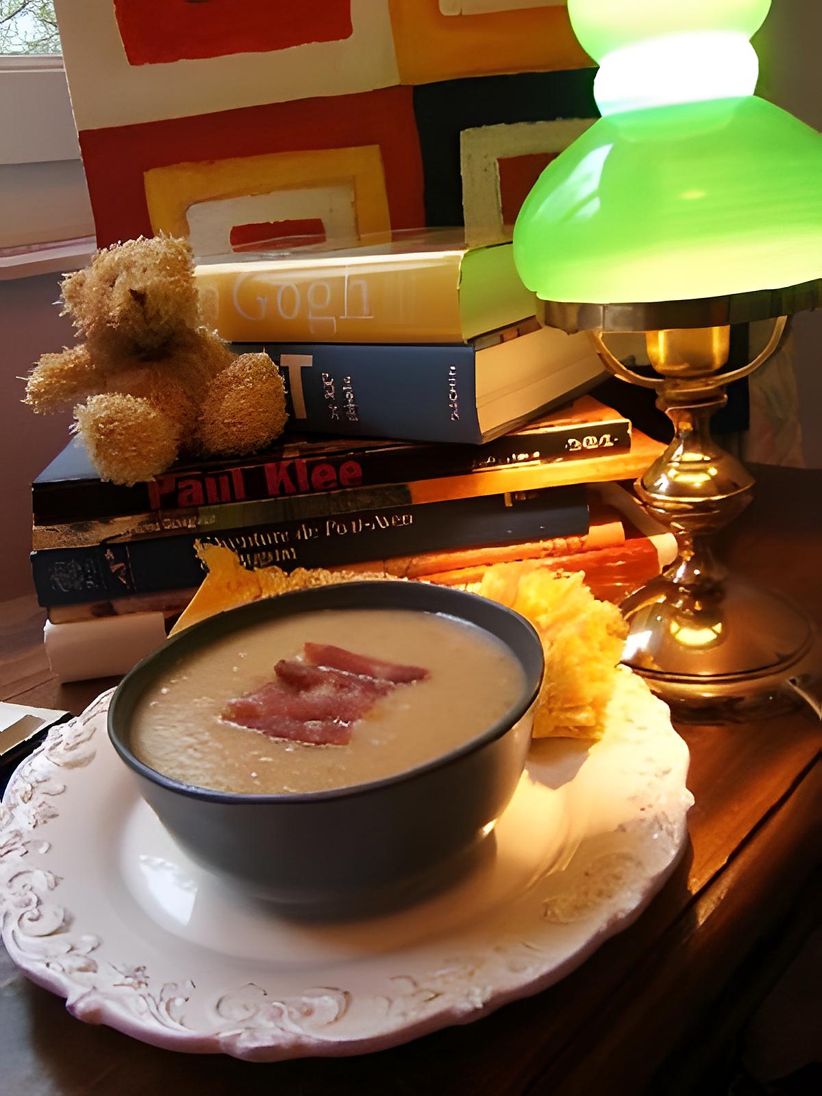 Répartissez cette crème aux oignons dans des bols individuels et parsemez d' un peu de jambon cru.
