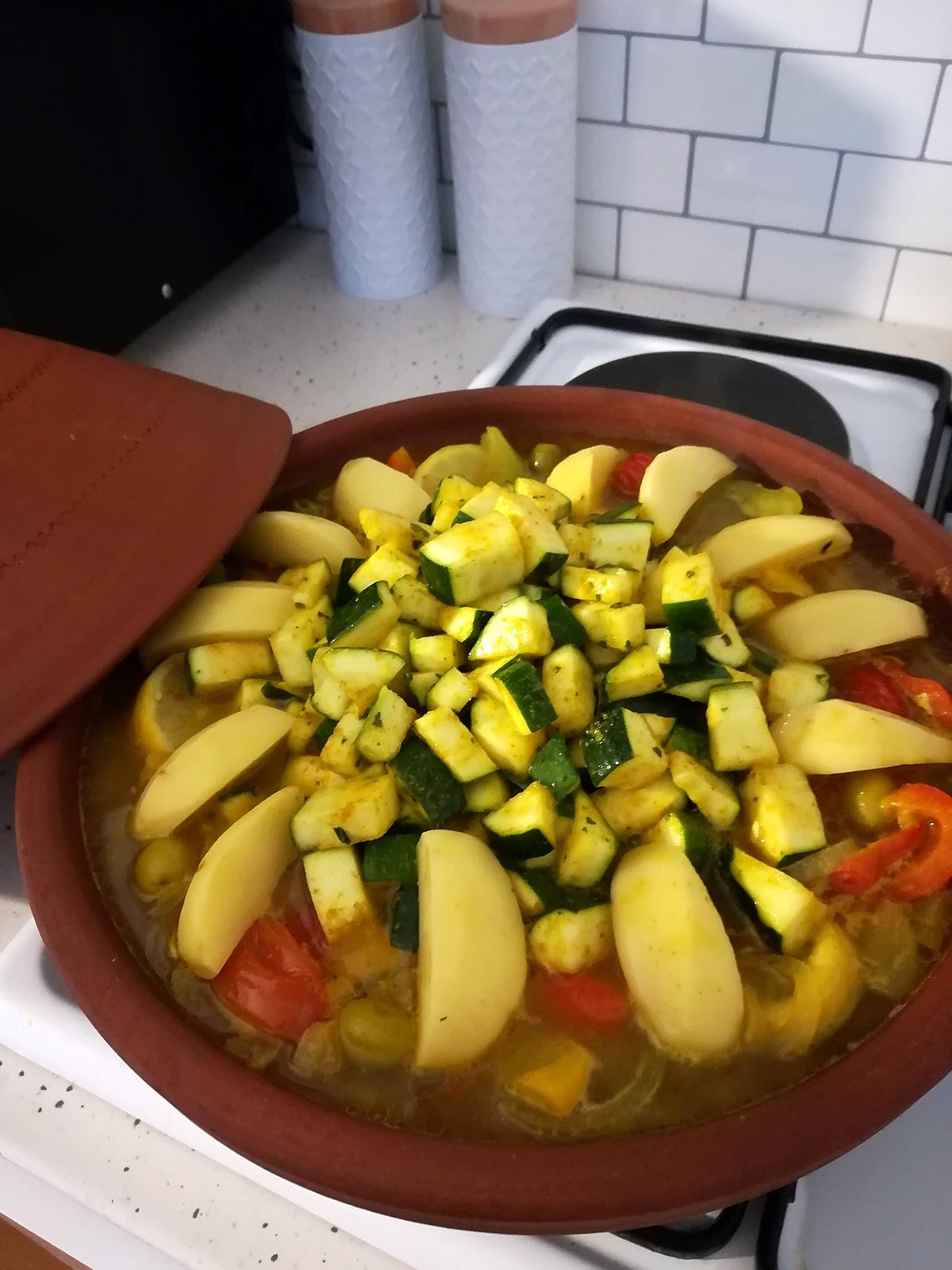 Accompagner de viande ou poisson. Vous pouvez ajouter votre poulet directement dans le tajine.